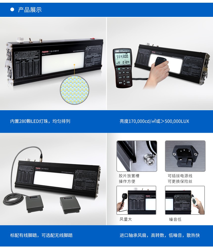 1、亮度高,FM2000觀片燈亮度上限可達50萬LUX。