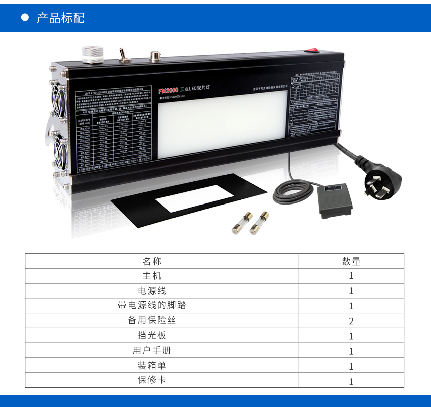 簡要介紹: FM2000工業觀片燈,280顆LED燈珠,是我公司綜合以往工業觀片燈的優點,克服了傳統熒光燈觀片燈亮度低,對比度差,衰減快的缺點,而研制出來的一款,亮度上限可達50萬LUX.符合NB/T47013-2015《承壓設備無損檢測》,GB/T19802-2005《工業射線照相底片觀片燈》標準。">